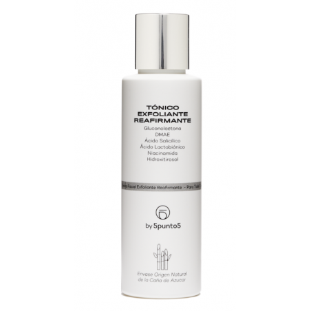 5PUNTO5 SKINLAB Tónico Exfoliante Reafirmante 125 ml es un tónico facial dermatológico que actúa como exfoliante suave y reafirmante. Este producto está especialmente formulado para quienes desean mejorar la textura, luminosidad y firmeza de la piel, siendo ideal tanto para pieles sensibles como para todo tipo de piel. Incorpóralo a tu rutina diaria para revelar una piel renovada y radiante desde las primeras aplicaciones.