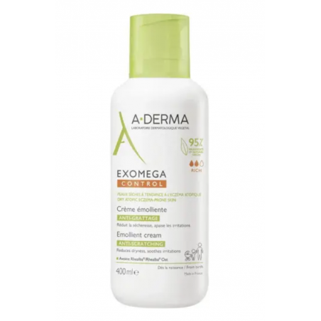 A-DERMA EXOMEGA CONTROL CREMA EMOLIENTE 400 ML es una crema hidratante especialmente desarrollada para el cuidado diario de la piel seca con tendencia atópica, desde recién nacidos hasta adultos. Su fórmula única calma la irritación, alivia el picor y protege frente a la sequedad, favoreciendo una piel más confortable. Dirigida a quienes buscan un tratamiento seguro y eficaz para restaurar y fortalecer la barrera cutánea en pieles sensibles, reactivas o con tendencia atópica.