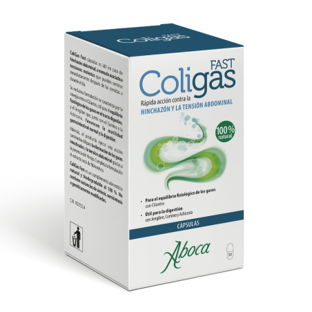 Antes de utilizar ABOCA COLIGAS FAST CÁPSULAS 50 CAPS, consulte con su médico o farmacéutico si está embarazada, en período de lactancia o toma medicación. No debe emplearse como sustituto de una dieta equilibrada ni de un estilo de vida saludable. Mantener fuera del alcance de los niños y no superar la dosis recomendada. Producto natural biodegradable, pero no exento de precauciones necesarias ante alergias puntuales.