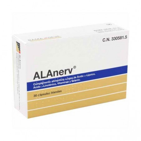 ALANERV 30 CAPS es un complemento alimenticio especialmente formulado para favorecer el equilibrio del sistema nervioso y proteger las células frente al estrés oxidativo. Indicado como apoyo en situaciones de desequilibrio nervioso o producción elevada de radicales libres, está dirigido a adultos que buscan un extra de protección antioxidante y neurotrófica. Su composición avanzada combina ácidos grasos, vitaminas y minerales esenciales para el bienestar nervioso.
