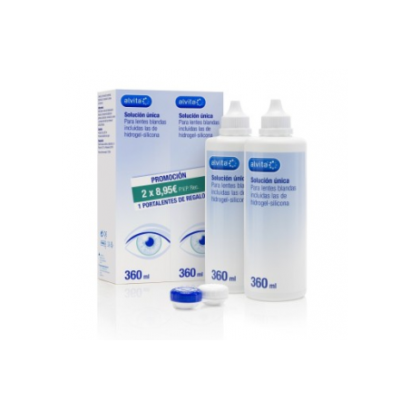 No se han descrito contraindicaciones específicas para Alvita Solución Única 2x360 ml Ac. Hialurónico, pero es fundamental seguir siempre las instrucciones de uso y no aplicar la solución directamente en los ojos sin las lentes puestas. Si notas irritación o molestias, suspende el uso y consulta a tu óptico u oftalmólogo. Mantén el producto fuera del alcance de los niños y no reutilices la solución ya empleada para evitar contaminaciones.