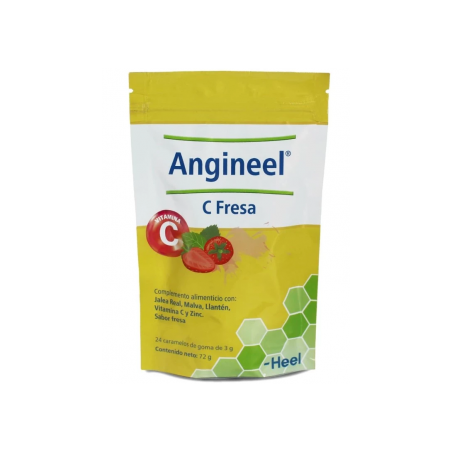 ANGINEEL C FRESA 24 caramelos de goma sabor fresa es un complemento ideal para el alivio rápido de la irritación y el picor de garganta. Estos caramelos, dirigidos a adultos y niños mayores de 6 años, están formulados con extractos de plantas, miel y probablemente vitamina C para calmar la tos y suavizar la garganta. Perfectos para quienes buscan una solución cómoda y eficaz para mejorar el bienestar durante los episodios de malestar orofaríngeo.