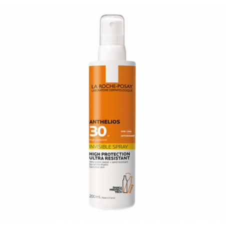 ANTHELIOS SPRAY SPF30+ 200 ML es un protector solar avanzado de La Roche-Posay, especialmente diseñado para brindar una protección solar de amplio espectro frente a rayos UVA/UVB, infra-rojos y contaminación. Ideal para adultos con piel sensible que buscan una defensa eficaz y confortable frente al sol, este formato en spray aporta hidratación, textura ultrafluida y acabado invisible, siendo apto para rostro y cuerpo.