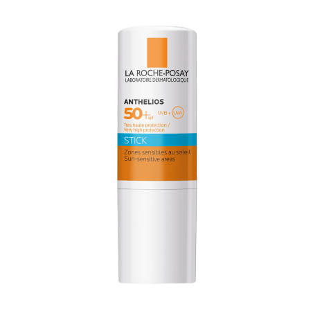 ANTHELIOS STICK ZONAS SENSIBLES SPF50+ 9ML es un fotoprotector en barra de La Roche-Posay diseñado especialmente para proteger con eficacia las zonas sensibles de la cara y el cuerpo frente a los rayos UVA y UVB. Indicado para adultos, niños y personas con piel sensible o intolerancia al sol, ofrece protección muy alta y un formato práctico para aplicar sobre áreas pequeñas, cicatrices, lunares o zonas especialmente vulnerables.