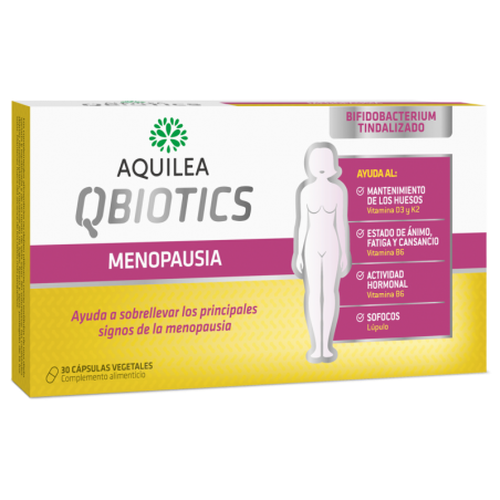 Empieza ahora a cuidar tu bienestar en la menopausia con Aquilea Qbiotics Menopausia 30 cápsulas y experimenta una mejora en tu calidad de vida. ¡Haz tu pedido y siéntete mejor cada día!
