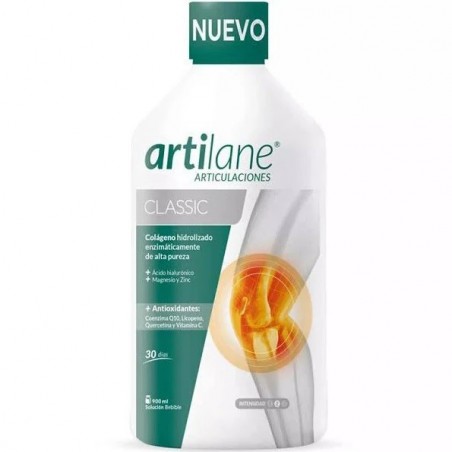 ARTILANE CLASSIC 1 ENVASE 900 ML es un complemento alimenticio líquido especialmente desarrollado para el cuidado de las articulaciones, huesos y tejidos conectivos. Gracias a su fórmula avanzada con colágeno hidrolizado, ácido hialurónico, antioxidantes y minerales, está dirigido a personas que buscan fortalecer su salud osteoarticular, prevenir molestias y favorecer la movilidad en su día a día.