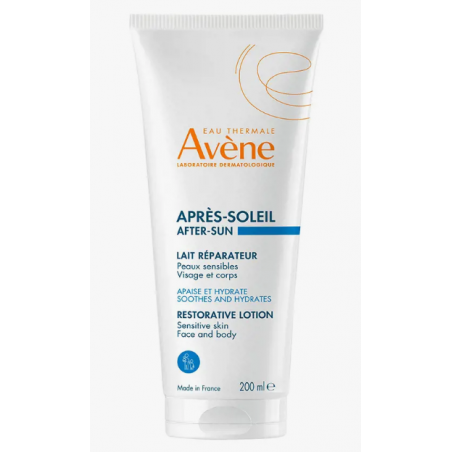 AVENE AFTER SUN 200ML es una loción reparadora post-solar diseñada para aliviar, hidratar y proteger la piel sensible tras la exposición al sol. Este producto de Avène está especialmente indicado para adultos y niños a partir de 2 años que buscan una hidratación duradera y un frescor inmediato en rostro y cuerpo tras tomar el sol. Su formulación, rica en Agua Termal de Avène y antioxidantes, garantiza el confort, reparación y protección celular de la piel expuesta al sol.