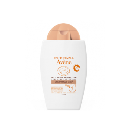 AVENE FLUIDO MINERAL SPF50+ COLOR 40 ML es un protector solar facial de alta protección especialmente formulado para personas con piel sensible o intolerante a los filtros químicos y perfumes. Este fluido mineral con color ofrece cobertura y protección eficiente frente a los rayos UVA y UVB, previniendo el envejecimiento prematuro y aportando confort diario a todo tipo de piel, incluso las más reactivas.