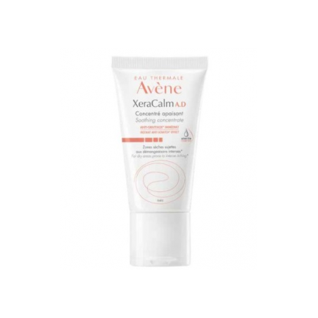AVENE XERACALM A.D. Concentrado Calmante Anti-Rascado - 50 ml es un tratamiento específico para el alivio inmediato de zonas secas con tendencia al picor intenso y al eczema atópico. Este producto está formulado para adultos, niños y bebés con piel atópica, seca o muy seca, que sufren irritaciones o brotes de picor intenso y recurrente. Su uso diario ayuda a recuperar y proteger la barrera cutánea, proporcionando confort y bienestar desde la primera aplicación.