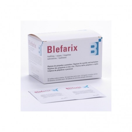 Las Toallitas Blefarix 50 uds están diseñadas para ser seguras, pero se recomienda evitar el contacto directo con la mucosa ocular y suspender el uso si aparece irritación persistente. No se han descrito contraindicaciones específicas, aunque, como en cualquier producto de higiene ocular, es importante mantener una adecuada higiene de manos y no reutilizar toallitas. Consulta a tu farmacéutico si tienes dudas sobre alergias o su compatibilidad con otros tratamientos oftálmicos.