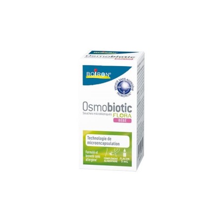 BOIRON OSMOBIOTIC FLORA BEBE es un complemento alimenticio en suspensión oleosa con cuentagotas, formulado para fortalecer la flora intestinal de los más pequeños desde su primer mes de vida. Pensado específicamente para bebés, está indicado para proteger su estómago frente a la acidez y contribuir a la restauración del bienestar digestivo, especialmente en épocas de desequilibrio intestinal.