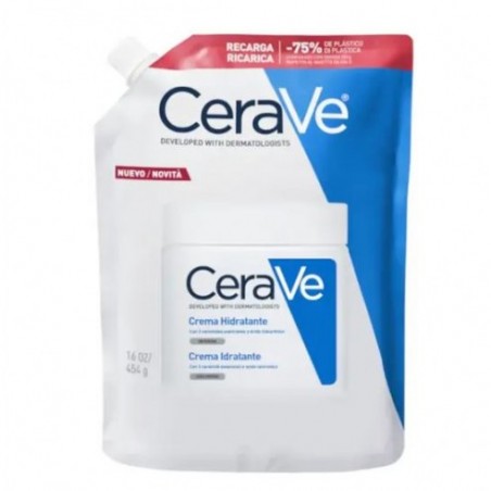 Cerave Crema Hidratante 1 Envase 473 ml Recarga es una crema dermatológicamente desarrollada para proporcionar hidratación intensa y duradera. Indicada para el cuidado diario de pieles secas a muy secas, su fórmula avanzada ayuda a restaurar y mantener la barrera natural de la piel, ofreciendo confort inmediato y protección continuada. Gracias a su textura ligera y no grasa, es adecuada tanto para adultos como para niños, incluso en las pieles más sensibles.