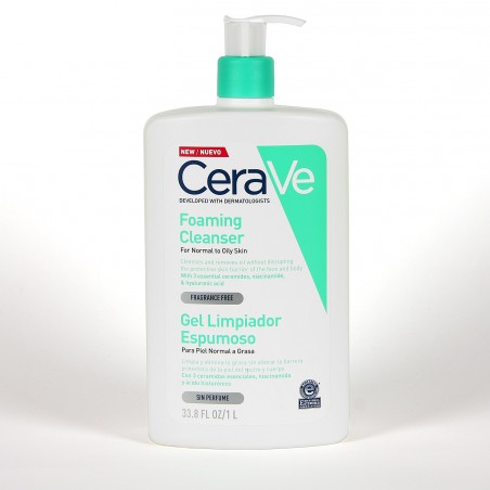 CeraVe Gel Limpiador Espumoso 1000 ML es un gel limpiador facial y corporal especialmente formulado para pieles normales a grasas, incluidas aquellas con tendencia acneica. Este producto limpia en profundidad, elimina el exceso de sebo y residuos, y ayuda a restaurar y mantener la barrera cutánea, por lo que es adecuado para quienes buscan una higiene diaria eficaz sin resecar la piel.