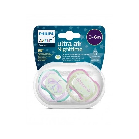 CHUPETE SILICONA PHILIPS AVENT ULTRA AIR NOCTURNO 0 - 6 MESES 2 UNIDADES NIÑA
