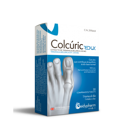 Colcuric Redux 30 comprimidos recubiertos es un suplemento dietético especialmente diseñado para ayudar a controlar y mantener los niveles de ácido úrico dentro de los valores normales. Indicado para adultos que buscan prevenir la acumulación de cristales de ácido úrico y proteger la salud renal, cardiovascular y osteoarticular, este producto combina extracto de Terminalia bellerica y zinc para aportar beneficios antioxidantes y regular el metabolismo del ácido úrico.