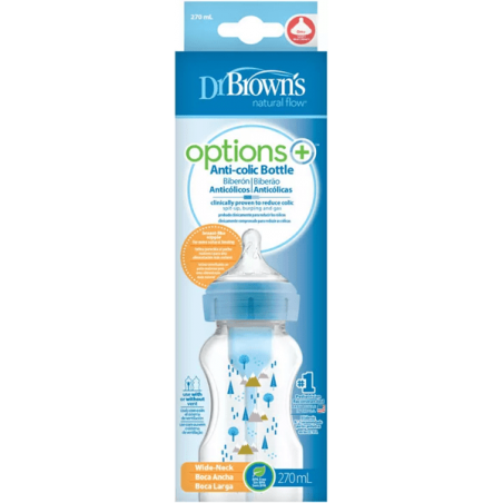 ¡Proporcione a su bebé una experiencia de alimentación más cómoda y segura con DR BROWN'S Biberón Boca Ancha Natural Flow Tetina Nivel 1 270 ml Océano y olvídese de los cólicos!