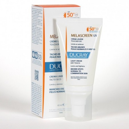 Ducray Melascreen Crema Ligera SPF50 40 ml es un fotoprotector facial avanzado especialmente formulado para proteger las pieles normales a mixtas frente a los daños ocasionados por los rayos UVA y UVB. Esta crema de textura ligera no solo previene quemaduras solares, sino que contribuye activamente a reducir la aparición de manchas marrones y los signos del fotoenvejecimiento. Ideal para quienes desean mantener su piel uniforme, luminosa y protegida a diario.