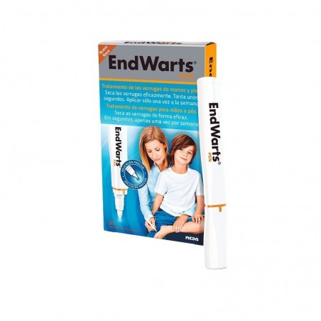 Endwarts Pen Lápiz Aplicador Antiverrugas 3ml es un tratamiento eficaz y práctico diseñado para eliminar verrugas en manos, pies, codos y rodillas. Este producto está formulado tanto para adultos como para niños, permitiendo una aplicación segura, precisa y fácil gracias a su lápiz aplicador de uso tópico. Endwarts Pen actúa secando la verruga desde el interior, ayudando a su eliminación progresiva sin dejar marcas visibles ni cicatrices.