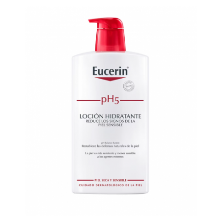 No se han descrito contraindicaciones específicas para Eucerin pH5 Loción 1000 ml, salvo en casos de hipersensibilidad o alergia conocida a alguno de sus componentes. Antes de un uso continuado sobre piel muy reactiva, se recomienda realizar una prueba de tolerancia en una pequeña zona. Evitar el contacto directo con ojos y mucosas.