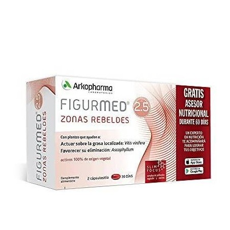 FIGURMED 2.5 ZONAS REBELDES ARKOPHARMA 60 cápsulas es un innovador complemento alimenticio formulado para ayudar a reducir la grasa localizada en las zonas más rebeldes del cuerpo. Su uso está especialmente indicado para personas que desean definir su silueta y apoyarse en extractos vegetales naturales como parte de un plan de control de peso. Descubre cómo puede ayudarte a alcanzar tus objetivos de forma saludable y eficaz.