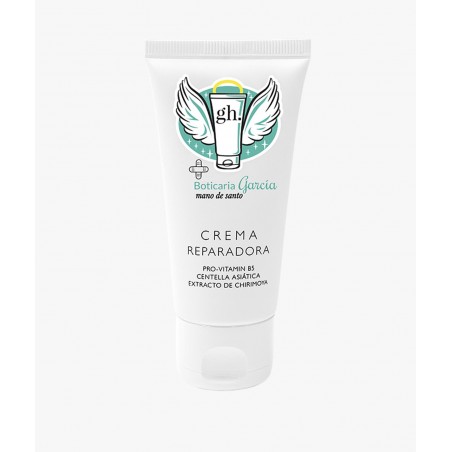 GH BOTICARIA GARCIA MANO DE SANTO CREMA REPARADORA 150 ML es una crema-gel multireparadora indicada para restaurar y calmar la piel dañada o irritada. Su fórmula de textura fluida, enriquecida con pantenol, centella asiática y extracto de chirimoya, está especialmente recomendada para personas con sequedad, rojeces, irritación o sometidas a tratamientos estéticos o exposiciones climáticas. Es apta incluso para pieles sensibles y estados como embarazo y lactancia.