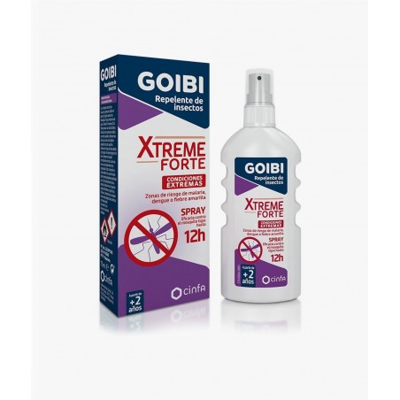 GOIBI XTREME FORTE REPELENTE DE INSECTOS 1 SPRAY 200 ML es un repelente de insectos de alta eficacia, diseñado para ofrecer protección continuada frente a picaduras de mosquitos, incluyendo el mosquito tigre, así como moscas, tábanos y garrapatas. Este producto está especialmente formulado para adultos y niños a partir de 2 años, siendo ideal para quienes viajan a zonas de riesgo de enfermedades tropicales o pasan tiempo en exteriores en climas extremos.