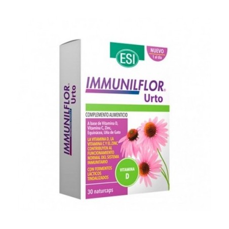 IMNUNIFLOR URTO ESI 30 NATURCAPS es un complemento alimenticio en cápsulas, formulado específicamente para fortalecer el sistema inmunitario en adultos que buscan una protección extra, especialmente durante los cambios de estación o en épocas de mayor demanda inmune. Su potente combinación de equinácea, uña de gato, vitaminas y probióticos ayuda a mantener tus defensas activas y contribuye al bienestar general.