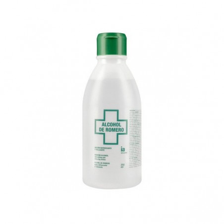 Alcohol de romero que refresca y alivia las molestias musculares tras friegas o masajes. Además, ayuda a tonificar y desinfectar la piel.