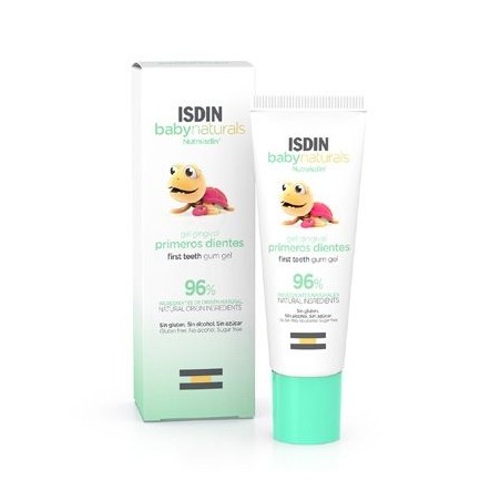 ISDIN Baby Naturals Nutraisdin Gel Gingival Primeros Dientes 30 ml es un gel específicamente formulado para aliviar las molestias y la irritación de las encías causadas por la salida de los primeros dientes en bebés y niños pequeños. Adecuado desde el nacimiento, ofrece una acción calmante inmediata, protegiendo las encías más delicadas con ingredientes naturales y respetuosos con la piel infantil.