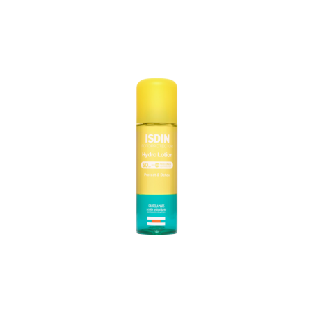 ISDIN Hydro Lotion Fotoprotector SPF50+ 200 ml es un fotoprotector corporal bifásico de última generación, diseñado para proteger y revitalizar la piel bajo el sol. Indicado para adultos y niños a partir de 3 años, este producto combina una alta protección solar SPF50+ con acción hidratante, antioxidante y detoxificante, ideal para quienes buscan cuidar y nutrir la piel durante la exposición solar.