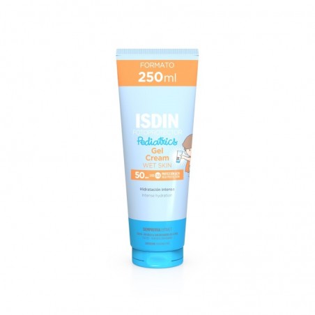 ISDIN Pediatrics Gel Crema SPF50+ 250 ml es un fotoprotector solar especialmente formulado para pieles infantiles sensibles, incluidas las atópicas, a partir de los 6 meses. Protege eficazmente la piel frente a los daños solares gracias a su alta protección UVA/UVB y su textura ligera de rápida absorción. Es ideal para proteger el rostro y cuerpo de los más pequeños durante la exposición solar, asegurando comodidad, resistencia y cuidado durante todo el día.