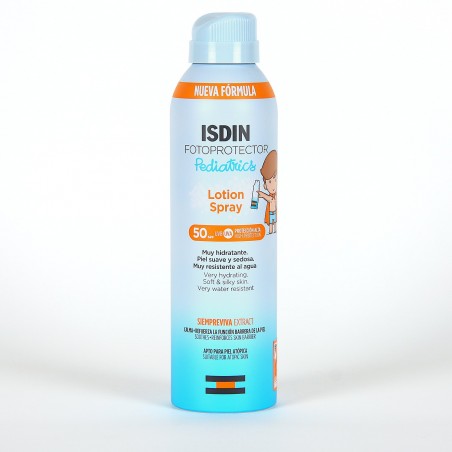 ISDIN Pediatrics Loción Spray Continuo SPF50+ 200 ml es un fotoprotector solar en formato spray especialmente formulado para la delicada piel de niños y bebés a partir de 6 meses de edad. Ofrece una protección muy alta frente a los rayos UVA y UVB, apto incluso para pieles sensibles o con tendencia atópica. Su innovadora fórmula hidrata intensamente y protege durante las actividades al aire libre, asegurando una cobertura duradera y resistente.
