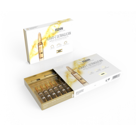 ISDINCEUTICS FLAVO-C ULTRAGLICAN 10 X 2 ML es un sérum facial en formato ampollas diseñado para combatir la pérdida de firmeza y las líneas finas de expresión. Desde la primera aplicación, este tratamiento intensivo aporta antioxidantes y activos hidratantes que revitalizan la piel y potencian su luminosidad. Especialmente indicado para personas que buscan prevenir y tratar los signos del envejecimiento, ayudando a mantener un cutis más firme, joven y radiante.