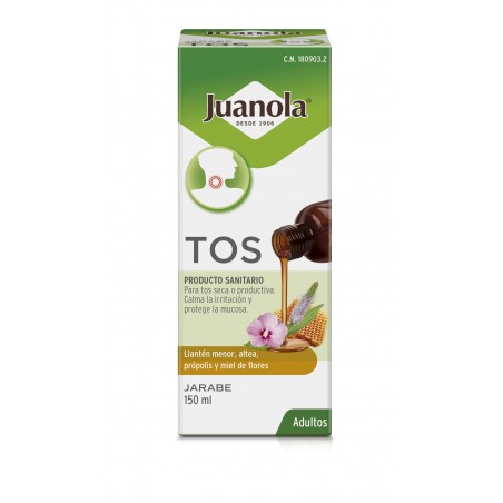 Juanola Tos Adultos JBE 150 ML es un jarabe natural especialmente formulado para aliviar la tos seca y productiva en adultos y adolescentes a partir de 12 años. Gracias a su combinación única de ingredientes como llantén menor, altea, própolis y miel de flores, este jarabe calma la irritación de la garganta, hidrata la mucosa y protege las vías respiratorias superiores. Es apto para celíacos y representa una alternativa suave y eficaz para quienes buscan tratar los síntomas de la tos de manera natural.