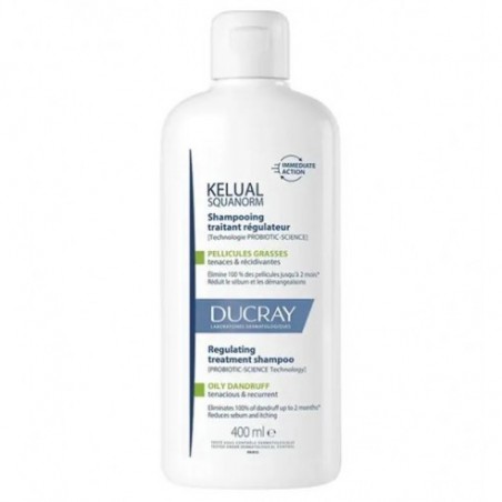 KELUAL SQUANORM Champú Tratante Regulador Caspa Grasa DUCRAY 400 ml es un champú especializado para combatir eficazmente la caspa grasa desde la raíz. Indicado para adolescentes y adultos, su fórmula innovadora elimina el 100% de la caspa visible desde la primera aplicación, regula el exceso de sebo y previene la reaparición durante dos meses. Ideal para quienes buscan un cuero cabelludo sano, sin irritaciones y un cabello con volumen y ligereza.