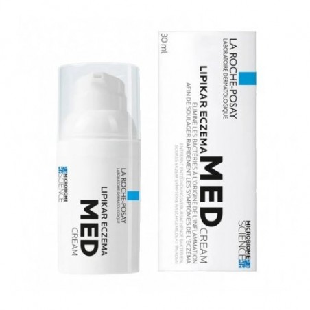 La Roche Posay Lipikar Eczema Med 1 Tubo 30 ML es una crema dermatológica indicada para aliviar y tratar los principales síntomas del eccema atópico, como la inflamación, el picor y el enrojecimiento. Formulada especialmente para pieles sensibles, esta crema sin corticoides ni perfumes está dirigida a adultos y niños que buscan un cuidado intensivo y seguro para rostro (incluso párpados), cuerpo y manos.