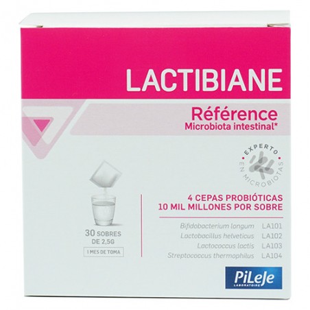LACTIBIANE REFERENCE PILEJE 30 SOBRES 2,5 G es un complemento alimenticio probiótico diseñado específicamente para equilibrar la microbiota intestinal y promover la salud digestiva. Este producto está especialmente indicado para personas que buscan mejorar el tránsito intestinal, reducir molestias como hinchazón o flatulencias y favorecer el confort abdominal desde la primera semana de uso.