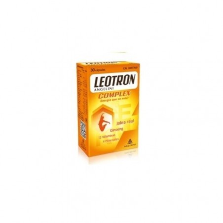 Leotron Complex Angelini 30 cápsulas es un complemento alimenticio completo indicado para adultos y adolescentes a partir de 12 años, ideal durante etapas de cansancio físico y mental intenso. Gracias a su fórmula con jalea real, ginseng, 12 vitaminas y 4 minerales, este suplemento contribuye a potenciar la energía y el rendimiento, siendo recomendable en periodos de esfuerzo, sobrecarga de trabajo o descanso insuficiente.