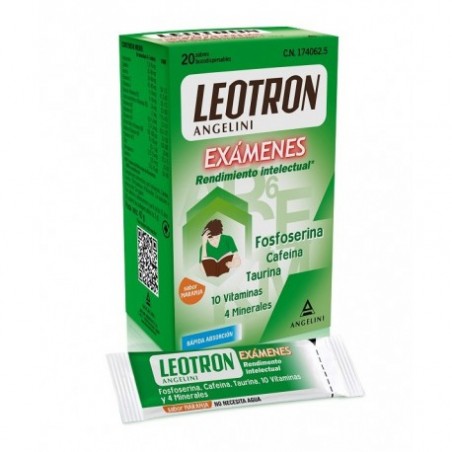 Leotron Exámenes Angelini 20 sobres bucodispersables es un complemento alimenticio especialmente diseñado para favorecer el rendimiento intelectual en épocas de estudio. Ideal para estudiantes, opositores y profesionales que atraviesan periodos de alta exigencia mental, este producto se compone de una completa mezcla de vitaminas, minerales y nutrientes que ayudan a combatir el cansancio y mejorar la concentración de forma práctica y eficaz, gracias a su formato que se disuelve directamente en la boca.