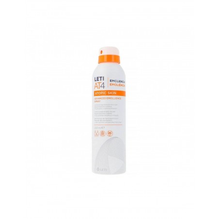 LETI AT4 Advanced Emollience 1 Spray 200 ml es un innovador spray dermatológico especialmente formulado para el cuidado intensivo de la piel atópica, seca o con tendencia a irritaciones. Este emoliente avanzado está indicado para personas de todas las edades que buscan restaurar y proteger la barrera cutánea, aliviar el picor e hidratar de forma inmediata y duradera, ofreciendo una solución cómoda para aplicar tras la higiene diaria o durante brotes de sequedad intensa.