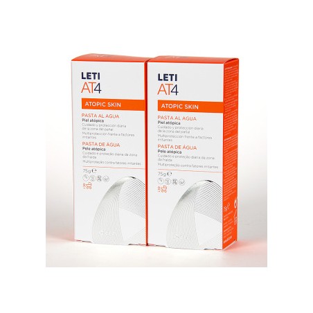 LETI AT4 DUPLO PASTA AL AGUA CREMA PAÑAL 75 GR es una crema de cuidado dermatológico diseñada para proteger y reparar la delicada piel del área del pañal en recién nacidos y bebés. Especialmente indicada para pieles sensibles, atópicas o propensas a irritaciones, esta pasta al agua ofrece una defensa ultraprotectora frente a agentes externos, ayudando a prevenir y calmar rojeces, escoceduras e irritaciones típicas del contacto con el pañal.