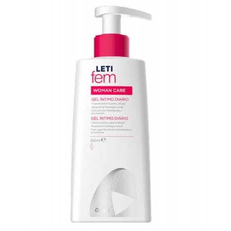 LETIFEM WOMAN GEL INTIMO 250 ML es un gel íntimo de uso diario formulado especialmente para la higiene y el cuidado de la zona íntima femenina. Su exclusiva composición proporciona limpieza, hidratación y protección frente a irritaciones, mientras ayuda a equilibrar la flora íntima y reducir la sequedad y molestias. Recomendado para mujeres que buscan una higiene respetuosa y eficaz para su bienestar íntimo.