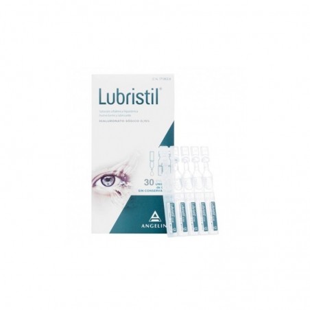 LUBRISTIL SOL OFTÁLMICA 30 MONODOSIS es una solución oftálmica estéril en formato monodosis, especialmente diseñada para aliviar de forma eficaz la irritación, sequedad y picor ocular. Recomendada para adultos y niños que sufren molestias en los ojos por factores ambientales, uso de pantallas o lentes de contacto, LUBRISTIL contribuye a restaurar el confort ocular y el equilibrio natural de la película lagrimal gracias a su avanzada fórmula libre de conservantes.