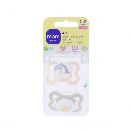 MAM AIR CHUPETE SILICONA FISIOLOGICO + 6 MESES 2 UNIDADES