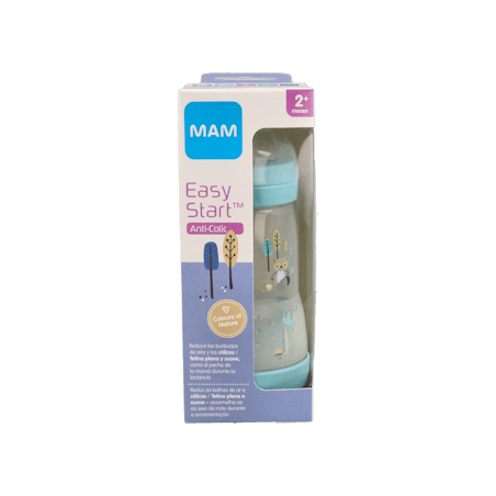 MAM Biberón Anti-Colic Easy Start +2 Meses Matt-A 260 ml es un biberón especialmente diseñado para bebés a partir de dos meses. Este producto ayuda a reducir los cólicos y facilita la transición entre la lactancia materna y el biberón gracias a su tetina de silicona SkinsSoft de forma simétrica y suave. Ideal para padres que buscan un biberón seguro, higiénico y fácil de limpiar para su bebé.