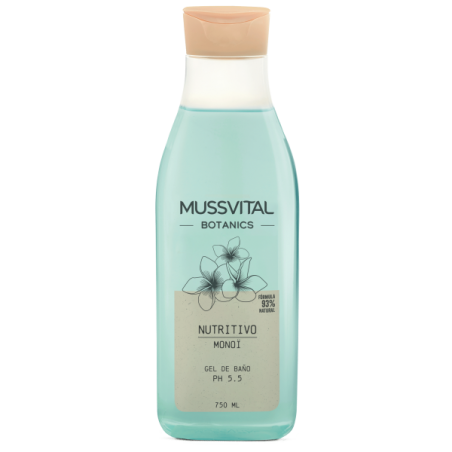 MUSSVITAL BOTANICS GEL DE BAÑO MONOI 750 ML es un gel de baño diseñado para la limpieza cotidiana de la piel, formulado con un 93% de ingredientes de origen natural y pH 5.5. Este producto está indicado tanto para adultos como para niños con pieles sensibles, proporcionando una limpieza suave que nutre y respeta la barrera natural cutánea gracias a su aceite de Monoi y su fórmula hipoalergénica.