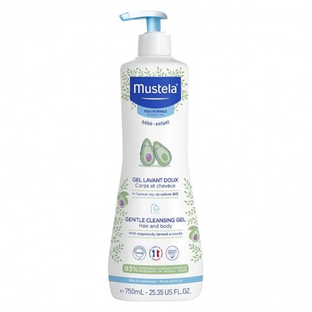 MUSTELA BEBE GEL DE BAÑO SUAVE 750ML es un gel de higiene infantil especialmente formulado para la limpieza diaria del cuerpo y el cuero cabelludo desde el nacimiento. Este gel de baño suave limpia con delicadeza, protege y cuida la piel sensible de los más pequeños, siendo apto para recién nacidos, bebés y niños con piel normal.
