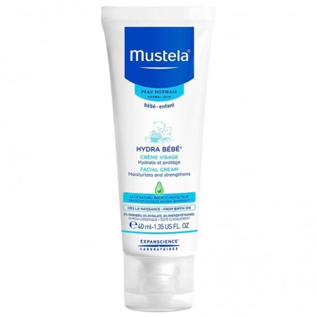 Mustela Bebé Hydra Bébé Facial 40 ml es una crema facial hidratante desarrollada especialmente para el cuidado diario de la delicada piel del rostro de bebés y recién nacidos. Elaborada con un 97% de ingredientes de origen natural, aporta hidratación inmediata y prolongada, ayudando a fortalecer la barrera cutánea y proteger las células cutáneas frente a las agresiones externas. Indicada desde el nacimiento, es ideal para padres que buscan una hidratación segura, eficaz y suave para la piel de su bebé.
