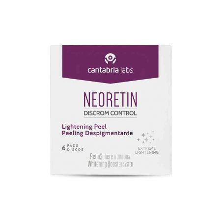 NEORETIN Discrom Control Peeling Despigmentante 6 Discos x 6 ml es un tratamiento intensivo antiedad y antimanchas diseñado para mejorar la textura, luminosidad y uniformidad de la piel. Indicado para todo tipo de pieles, este producto está especialmente formulado para quienes buscan reducir las manchas cutáneas y atenuar irregularidades del tono, favoreciendo la renovación celular y la acción despigmentante gracias a la sinergia de peeling químico, enzimático y mecánico.