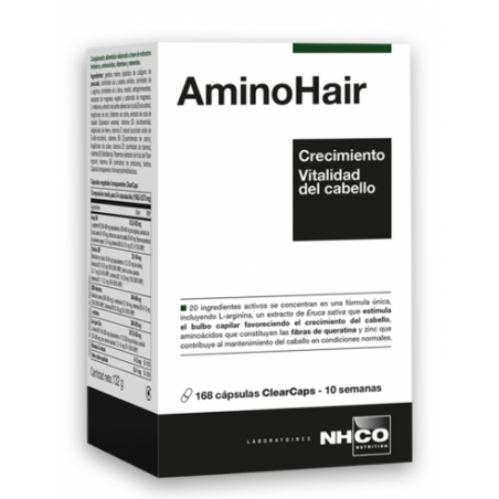 Antes de comenzar a tomar NHCO AminoHair 168 cápsulas, consulte con un profesional de la salud si tiene alguna condición médica o está siguiendo algún tratamiento, especialmente en situaciones concretas como embarazo, lactancia o enfermedades crónicas. No sustituya una dieta variada y equilibrada por el uso de complementos alimenticios. Mantenga fuera del alcance de los niños y siga siempre las instrucciones de uso del envase.